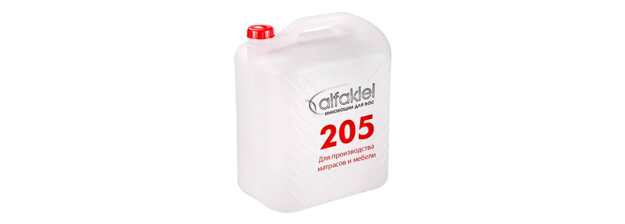 Alfakley 205 is a non-flammable contact adhesive with high penetrating ability. Forms a thin, invisible adhesive seam. Used in the production of mattresses and upholstered furniture.